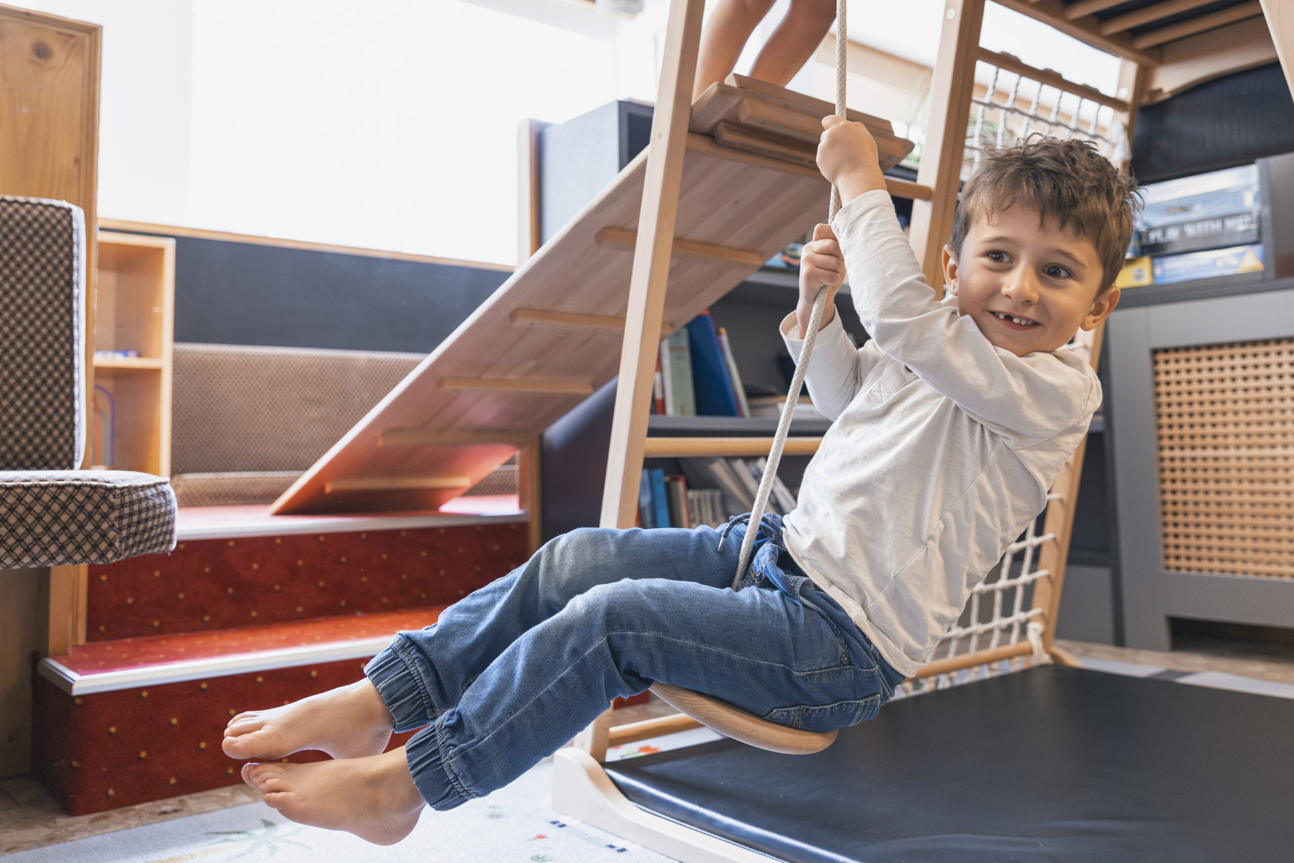 Das Appartement bietet Platz und Freiraum für unsere kleinen Gäste. Die Kinder-Galerie mit einer Raumhöhe von 1,50m ist mit einem Doppelbett, Regalen und einem TV ausgestattet und bietet einen fantastischen Ausblick ins Tal.