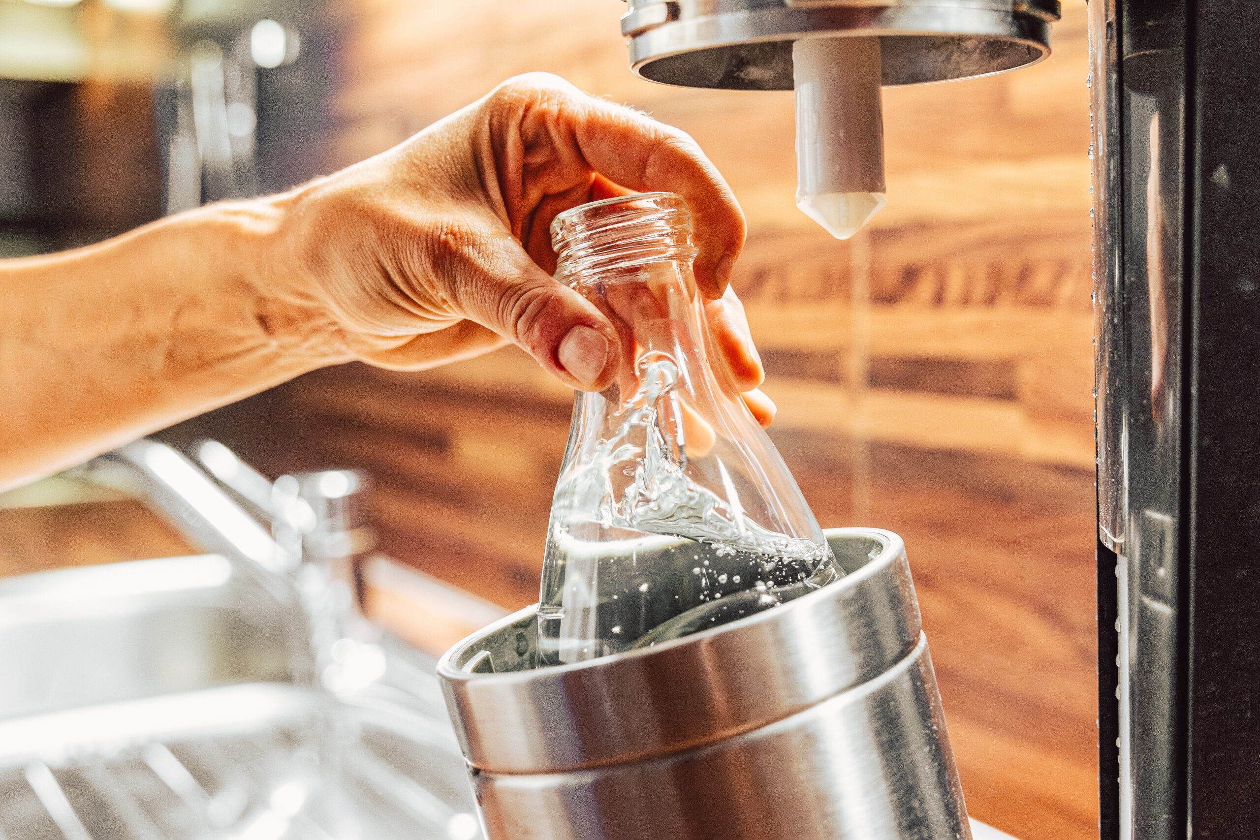 Frisch und kühl kommt das Paznauner Bergquellwasser aus der Leitung. Stilles Wasser genießt Ihr vom Wasserhahn. Wer es lieber prickelnd mag, sprudelt das Wasser im Erdgeschoss bei der Soda Club Station auf.